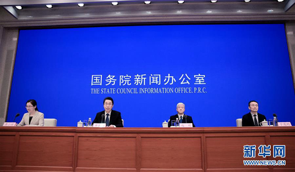 4月28日,國務院新聞辦公室在北京舉行新聞發(fā)布會,請國家知識產(chǎn)權局局長申長雨、國家知識產(chǎn)權局副局長趙剛、中宣部版權管理局局長于慈珂介紹2018年中國知識產(chǎn)權發(fā)展狀況,并答記者問。新華社記者 潘旭 攝