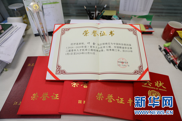 圖為葉金所獲榮譽證書。 新華網汪亞/攝