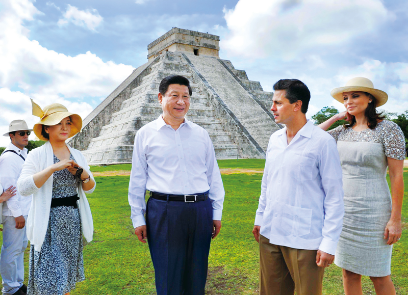 2013年6月6日,為推進中墨兩個文明古國的文化交流,國家主席習近平應培尼亞總統(tǒng)邀請參觀奇琴伊察瑪雅文明遺址。 新華社記者 饒愛民/攝