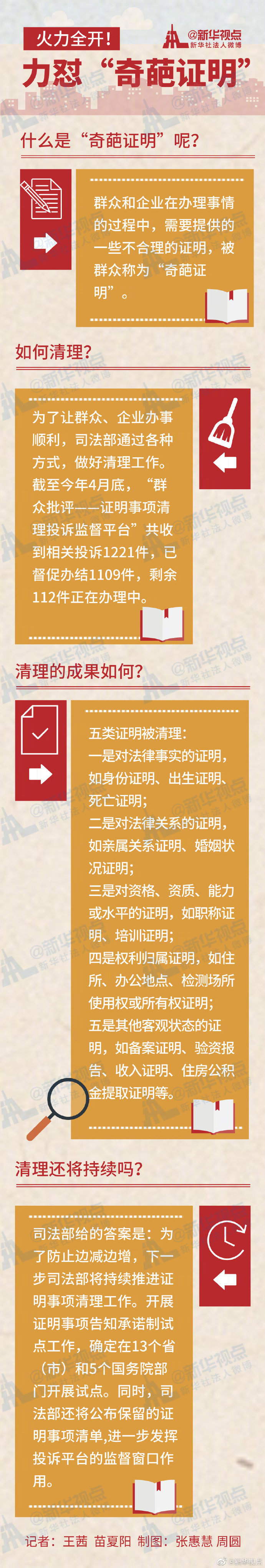 在清理“奇葩證明”中,各地各部門火力全開,持續(xù)清理。如何清理“奇葩證明”,目前成果如何?14日國新辦舉行的政策例行吹風(fēng)會上,司法部介紹了相關(guān)情況? ????