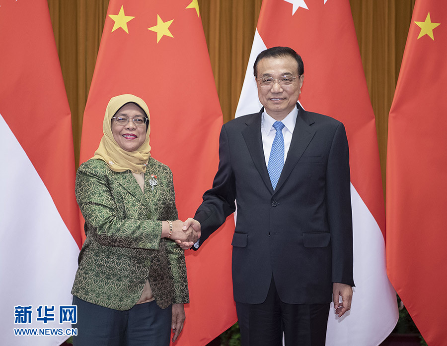 李克強表示,中國和新加坡隔海相望,兩國在相互尊重、平等合作、互利共贏基礎(chǔ)上發(fā)展了良好關(guān)系,給兩國人民帶來福祉。新加坡是個多元文明構(gòu)成的社會。昨天,習近平主席同總統(tǒng)女士舉行了富有成果的會見,展望了兩國關(guān)系廣闊前景。中方愿同新方發(fā)揮各自優(yōu)勢,保持良好合作勢頭,繼續(xù)挖掘合作潛力,將“一帶一路”倡議同新方發(fā)展戰(zhàn)略相銜接,推動中國西部地區(qū)和新加坡對接,扎實推進“陸海新通道”、第三方市場、智慧城市、技能培訓等領(lǐng)域合作。希望雙方推進文明和文化的交流,密切人員往來,夯實兩國友好的民意基礎(chǔ),促進雙邊關(guān)系繼續(xù)向前發(fā)展。中方愿同新方共同應對全球性挑戰(zhàn),為世界和地區(qū)的和平穩(wěn)定發(fā)展作出貢獻。