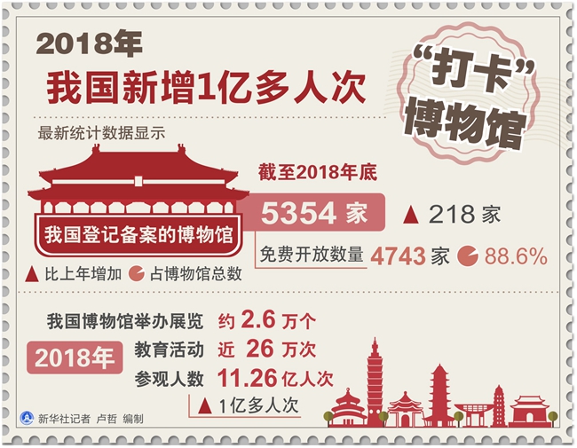 新華社長(zhǎng)沙5月18日電(記者施雨岑、柳王敏)最新統(tǒng)計(jì)數(shù)據(jù)顯示,2018年,我國博物館舉辦展覽約2.6萬個(gè),教育活動(dòng)近26萬次,參觀人數(shù)達(dá)11.26億人次,比上年增加1億多人次。