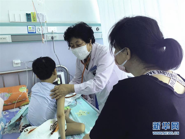 劉建平在給血液病患兒做日常檢查(資料照片)。新華社發(fā)