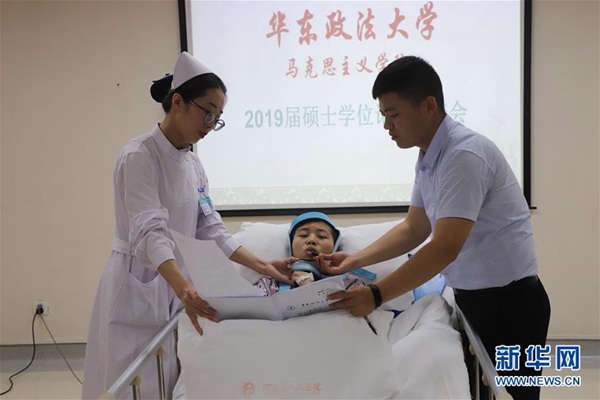 “因為該學生情況特殊,我們征得學校和醫院的同意后,在程艷芳同學身體狀況允許的情況下,決定采用這種特殊的方式進行答辯?!比A東政法大學馬克思主義學院院長何益忠表示,學校有關領導和導師組經過討論,決定前往鄭州,為程艷芳單獨舉行一場特殊的答辯會。