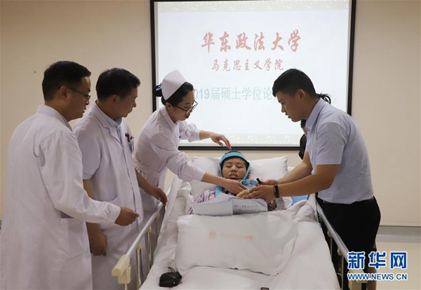 得知程艷芳的想法后,華東政法大學馬克思主義學院的老師們很受觸動,“答辯是她親自提出來的,說希望能和同學們一起畢業,我們都覺得這個孩子特別堅強。”華東政法大學教授林凌表示,這是他記憶中第一個躺在病床上完成論文答辯的學生。