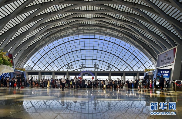6月9日,旅客在天津西站候車大廳排隊等候。據(jù)悉,全國鐵路9日迎來端午小長假返程客流高峰,預(yù)計發(fā)送旅客1370萬人次,加開旅客列車889列。新華社發(fā)(楊寶森 攝)