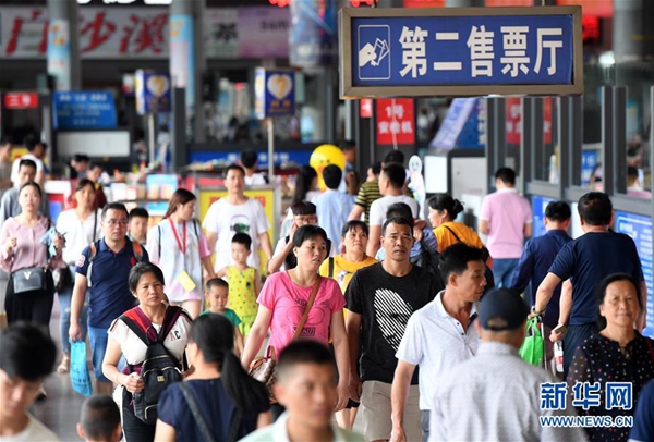 6月9日,在廣西南寧市埌東汽車站,旅客進入候車室。當(dāng)日是端午小長假最后一天,廣西南寧市客運站迎來客流返程高峰。新華社記者 陸波岸 攝