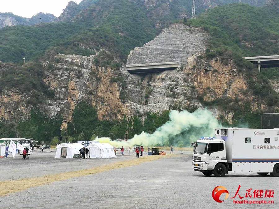 演練現場共調集緊急醫學救援、突發急性傳染病防控、突發中毒事件處置3類6支國家衛生應急隊伍,動用制式衛生應急車輛150余臺、模塊化醫療救治帳篷40余頂、救援直升機1架,共有京津冀22家醫療衛生單位的330余人參加了演練。