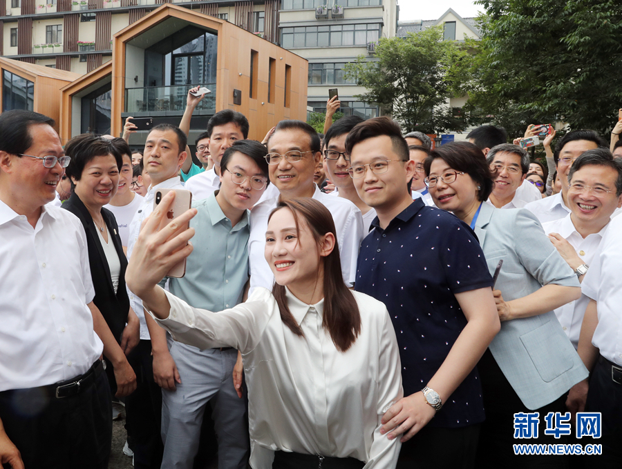 6月12日至13日,中共中央政治局常委、國務(wù)院總理李克強(qiáng)在浙江杭州考察。這是6月13日,李克強(qiáng)在夢想小鎮(zhèn)與青年創(chuàng)業(yè)者在一起。 新華社記者 劉衛(wèi)兵 攝