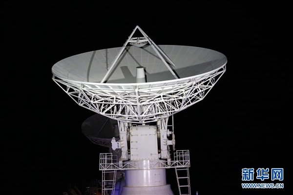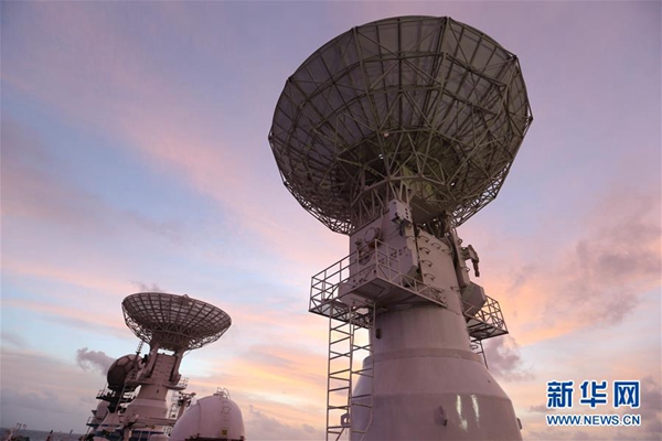 6月25日拍攝的遠(yuǎn)望3號船海上測控的雷達(dá)天線。新華社記者 李雨澤 攝