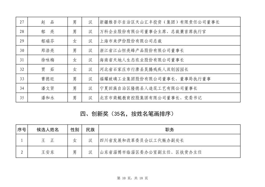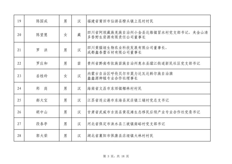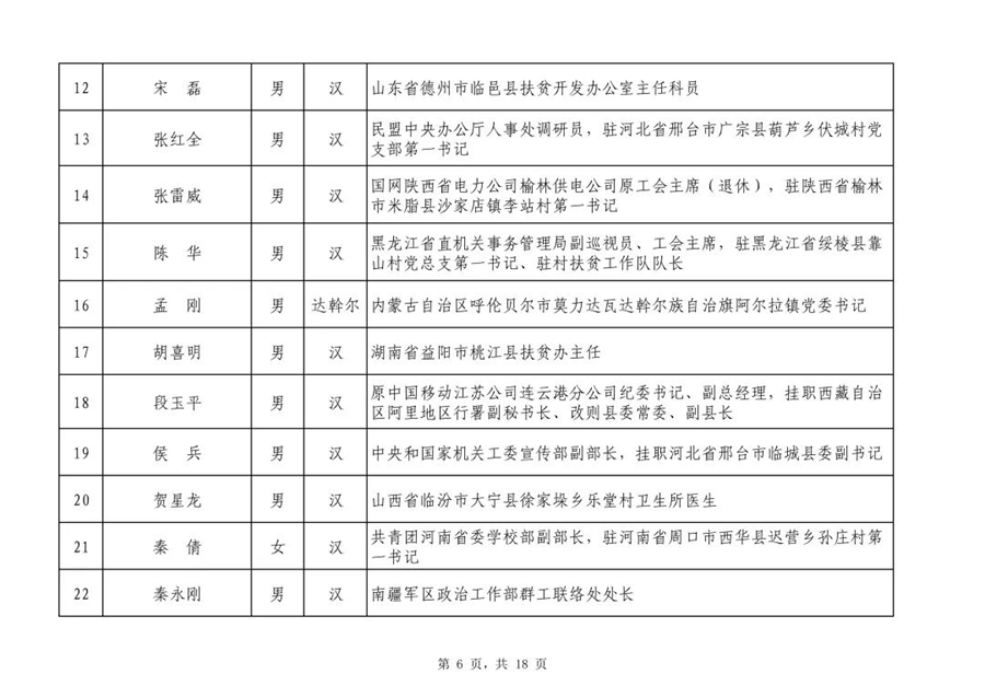 根據國務院扶貧開發領導小組印發的《2019年全國脫貧攻堅獎評選表彰工作方案》,經全國脫貧攻堅獎評選委員會初次評審,以下140名人選和59個單位作為2019年全國脫貧攻堅獎初評候選人(單位),現予以公示。