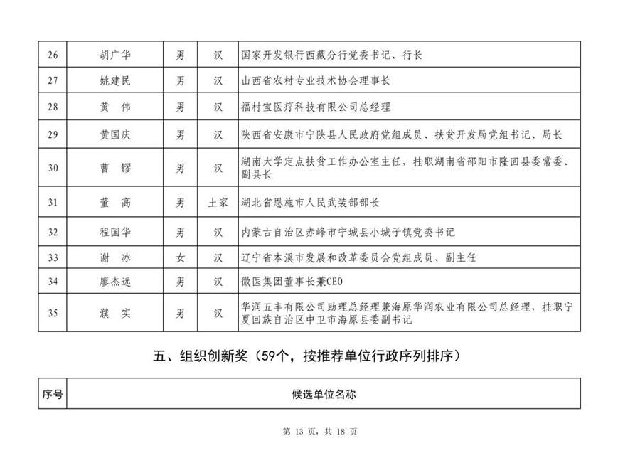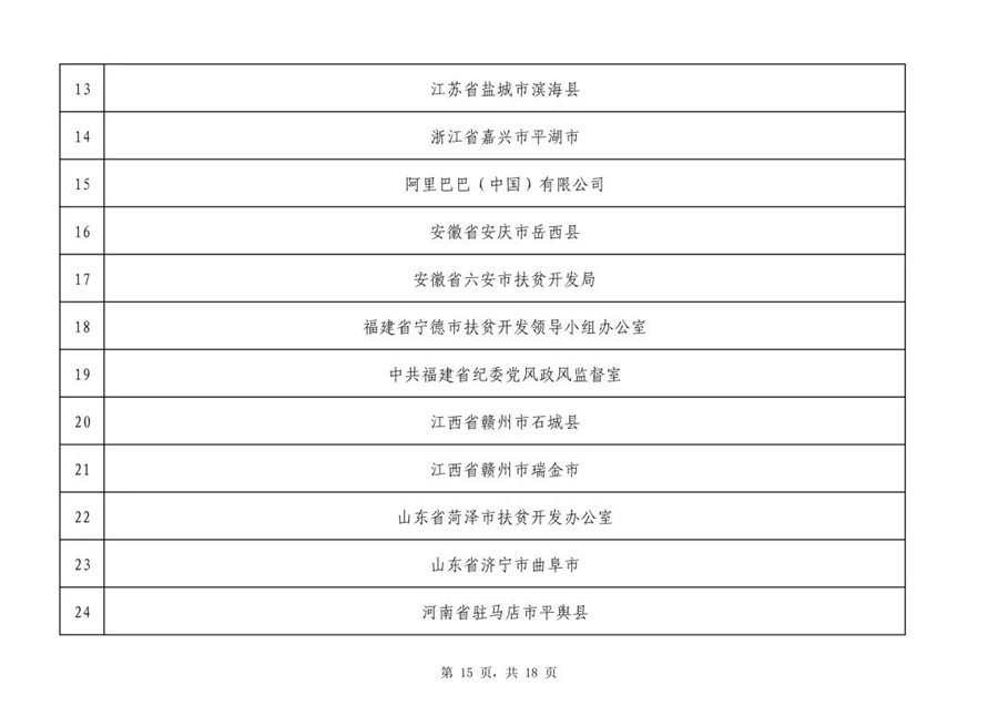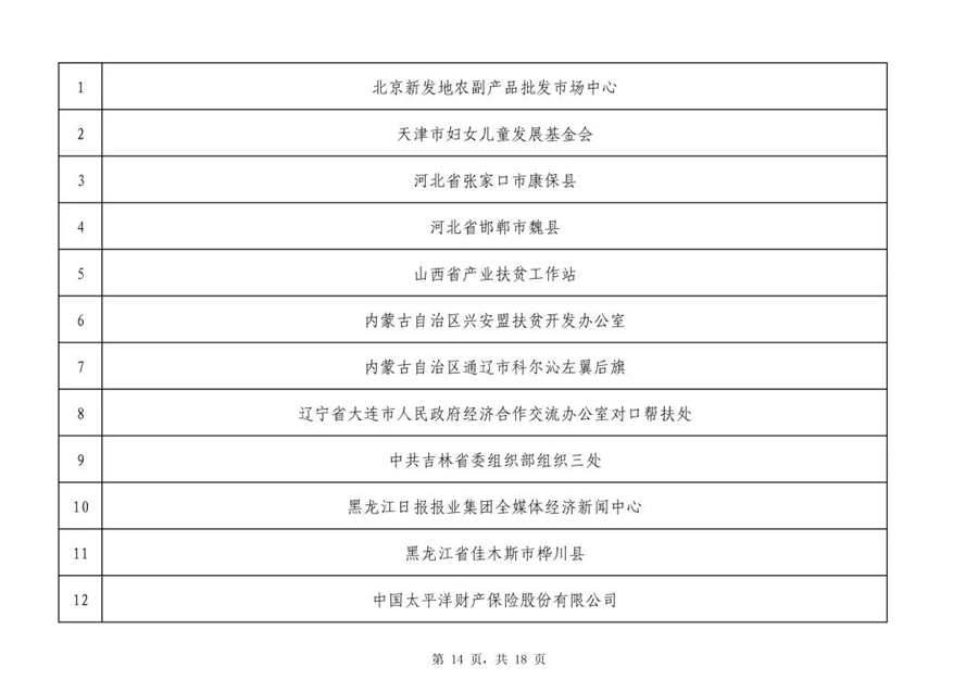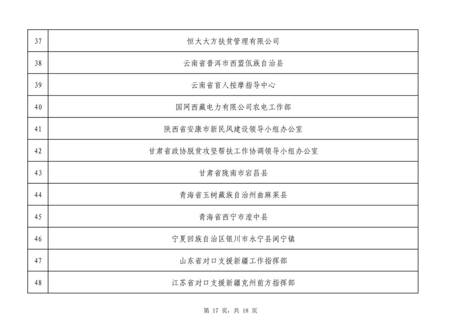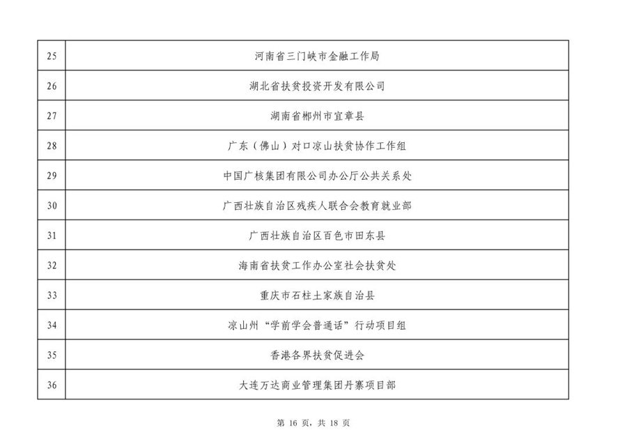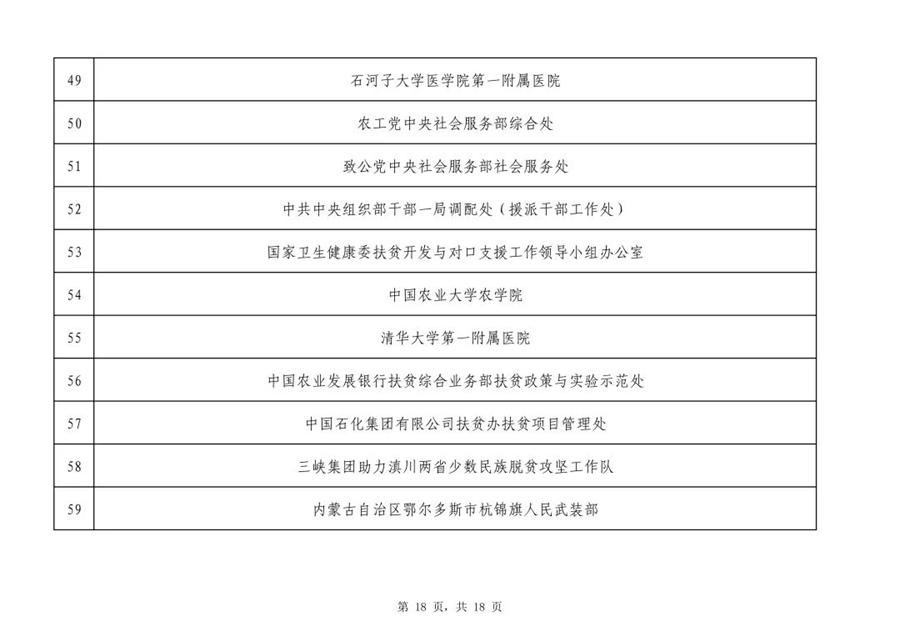 2019年全國脫貧攻堅獎初評候選人(單位)
