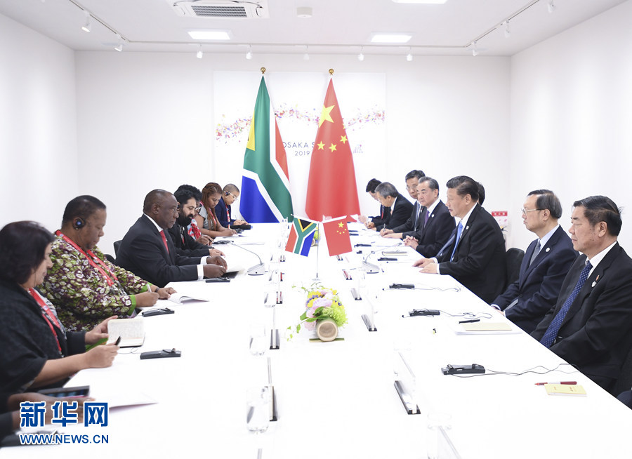 6月28日,國家主席習近平在大阪會見南非總統拉馬福薩。 新華社記者 燕雁 攝