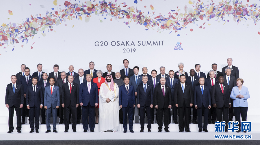6月28日,二十國集團領導人第十四次峰會在日本大阪舉行。國家主席習近平出席并發表題為《攜手共進,合力打造高質量世界經濟》的重要講話。這是習近平同其他與會領導人合影。新華社記者 黃敬文 攝