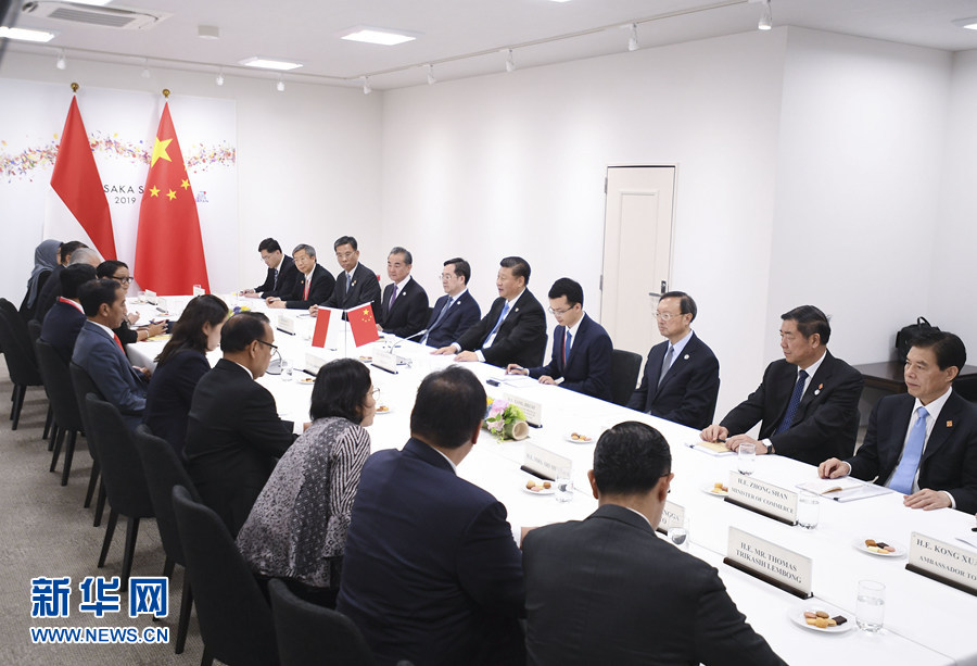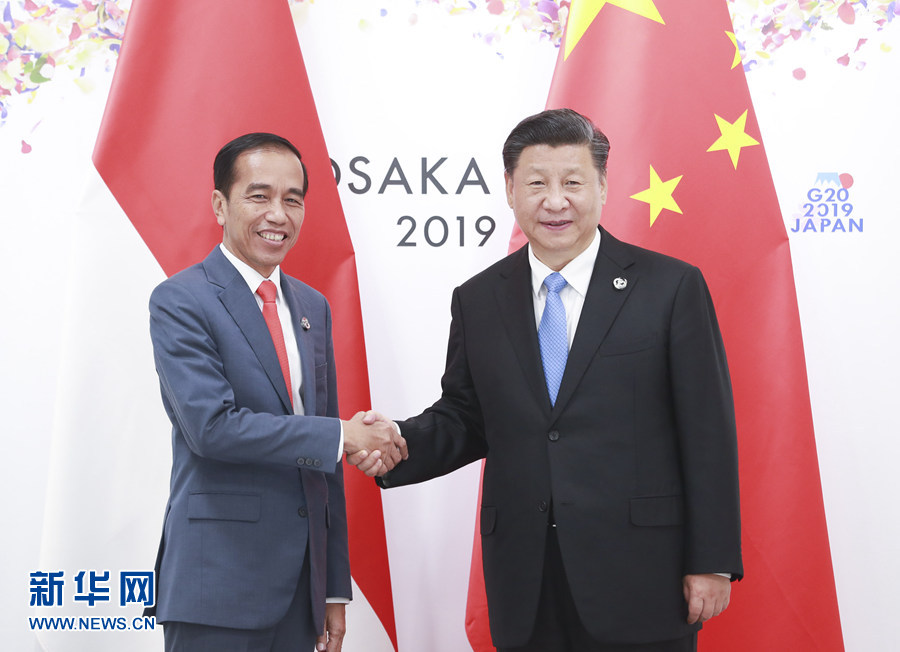 6月28日,國家主席習近平在大阪會見印度尼西亞總統佐科。 新華社記者 燕雁 攝