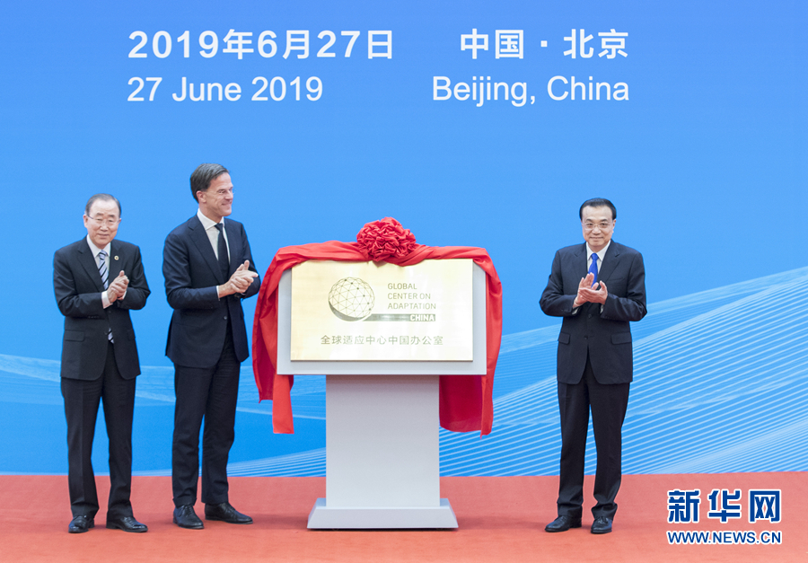 新華社北京6月28日電(記者鄭明達)國務院總理李克強27日晚在人民大會堂同荷蘭首相呂特、聯合國前秘書長潘基文共同出席全球適應中心中國辦公室揭牌儀式。