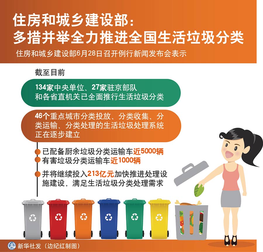 新華社北京6月28日電(記者王優(yōu)玲)住房和城鄉(xiāng)建設(shè)部28日召開(kāi)例行新聞發(fā)布會(huì)表示,下一步將繼續(xù)會(huì)同有關(guān)部門(mén)多措并舉全力推進(jìn)生活垃圾分類工作。