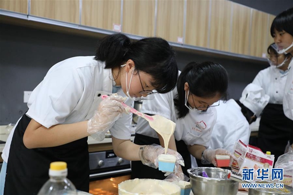 廣州市番禺區(qū)實(shí)驗(yàn)中學(xué)的學(xué)生在上蛋糕烘焙課(6月3日攝)。新華社記者 李嘉樂 攝