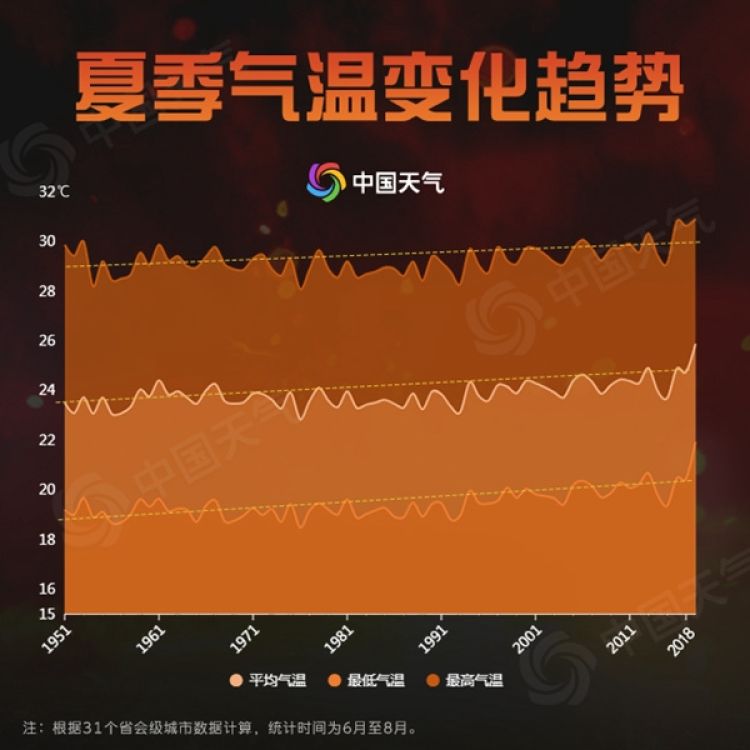 夏天真的越來(lái)越熱了嗎?中國(guó)天氣網(wǎng)統(tǒng)計(jì)了1951年以來(lái)全國(guó)夏季年平均氣溫發(fā)現(xiàn),無(wú)論平均氣溫、最高氣溫還是最低氣溫均出現(xiàn)上升趨勢(shì),越來(lái)越熱并非錯(cuò)覺。