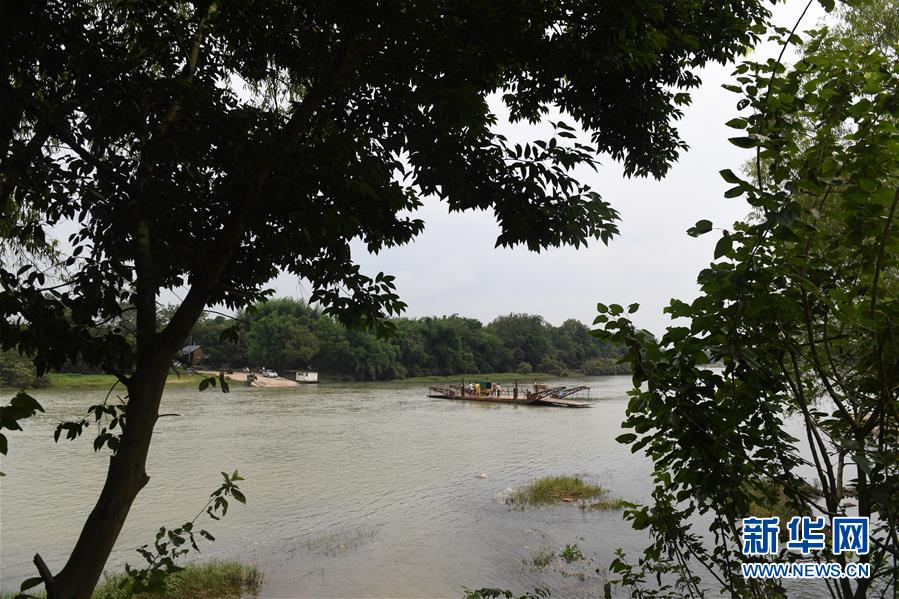 船只在廣西全州縣鳳凰鎮的鳳凰嘴渡口間來往(6月29日攝)。80多年前,最后一批紅軍在這里渡過湘江。當時涉渡寬約百米的江面,猶如跨越天塹。新華社記者 陸波岸 攝