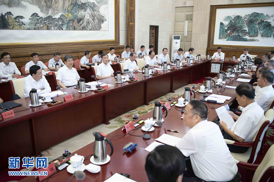 7月8日,中共中央政治局常委、全國政協主席汪洋在北京與有關民主黨派中央負責人座談,就民主黨派開展的“優化營商環境激發微觀主體活力”課題調研成果進行協商。新華社記者 李濤 攝