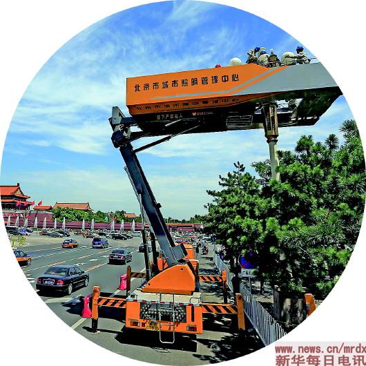 60年來,華燈的外觀從未改變。但里面的燈具、燈桿、管線等早已發生天翻地覆的變化。“這變與不變,正是科技制造水平的日益提升、祖國日益強大的體現。”宋曉龍說。