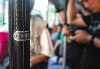 7月12日,455路公交車上的兒童購票身高標(biāo)識(shí)。