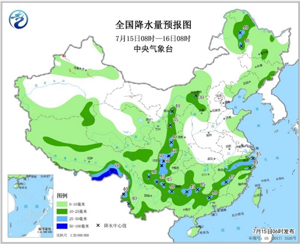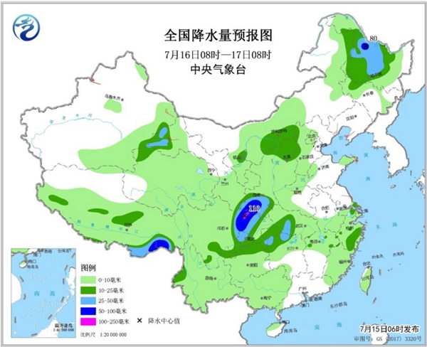 7月17日08時(shí)至18日08時(shí),黃淮西部、江淮東部、江漢大部、西南地區(qū)東部、四川南部、西藏東南部等地部分地區(qū)有中到大雨,其中,四川東北部、湖北北部、河南南部等地部分地區(qū)有暴雨,局地大暴雨。