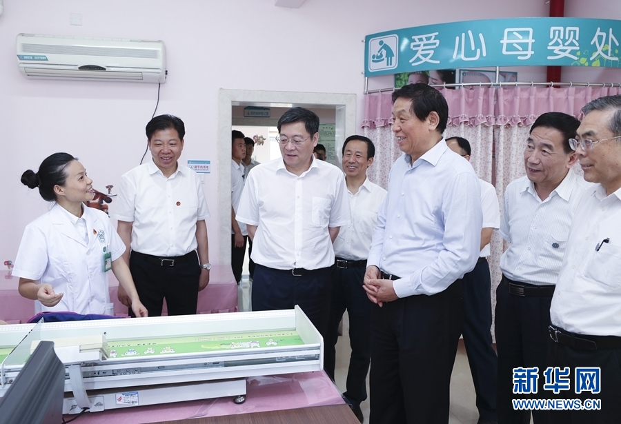 7月23日至25日,中共中央政治局常委、全國人大常委會委員長栗戰書在湖南調研。這是7月24日,栗戰書在株洲市栗雨街道社區衛生服務中心調研。 新華社記者 姚大偉 攝