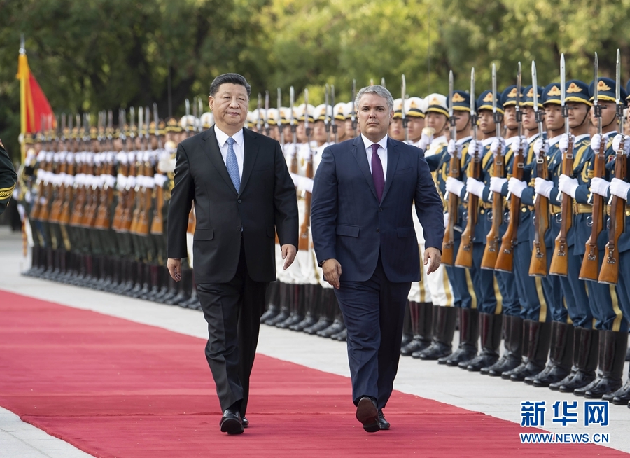 習近平指出,40年前,哥倫比亞政府審時度勢,作出同中國建交的決定,總統先生的父親是當時政府成員,堅定擁護這一決策,見證了兩國關系起航時刻。今天中哥關系發展的接力棒傳到你和我手上。這次你專程訪華,以實際行動表明你積極致力于深化中哥傳統友好和互利合作,我對此高度贊賞。中方愿同哥方圍繞建交40周年這一重要節點,共同規劃未來發展藍圖,推動中哥關系邁上新臺階。