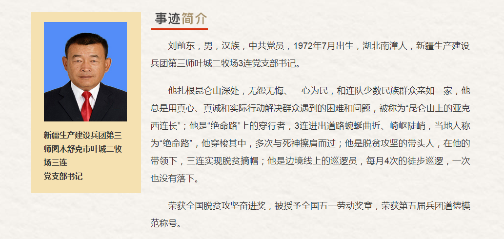 新疆生產建設兵團“最美奮斗者”推薦人選