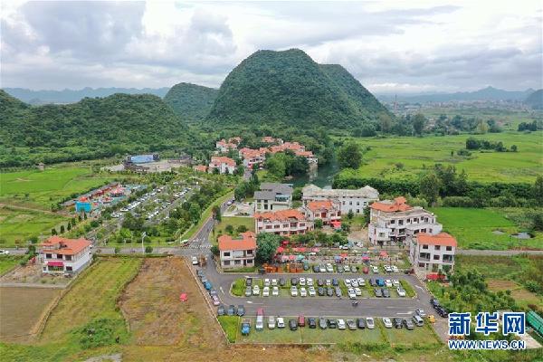 這是8月4日無人機拍攝的貴州省安順市平壩區(qū)夏云鎮(zhèn)小河灣村風(fēng)光。新華社記者 李凡 攝