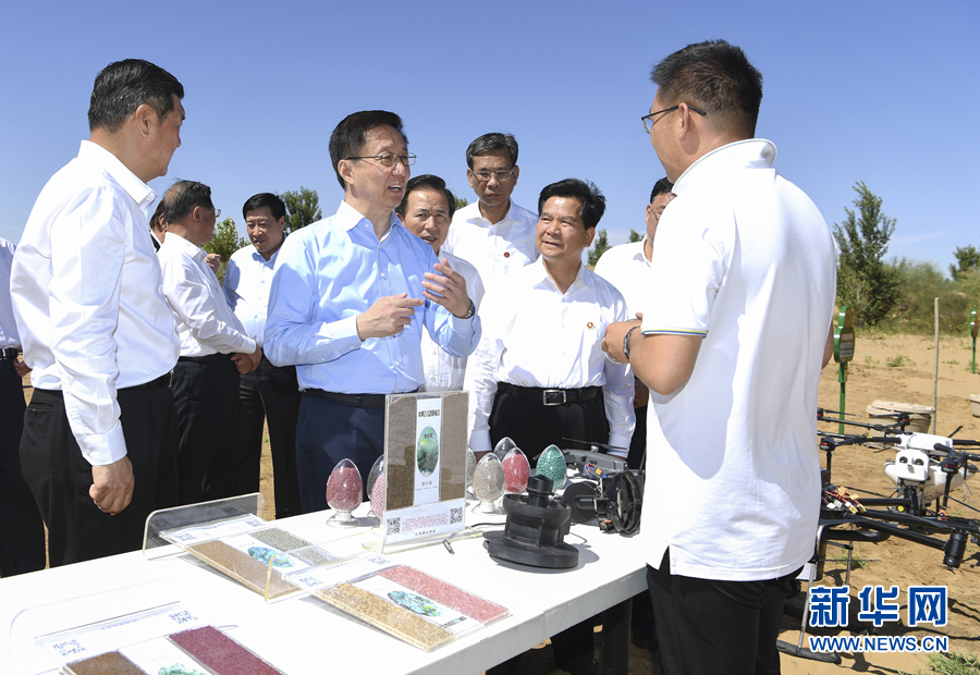 8月26日至27日,中共中央政治局常委、國務院副總理韓正到內(nèi)蒙古自治區(qū)鄂爾多斯市,就庫布其沙漠防沙治沙和生態(tài)建設情況進行調(diào)研。這是8月27日,韓正來到位于庫布其沙漠腹地的沙峰綠谷,實地查看科技手段治沙成果。新華社記者 張領 攝