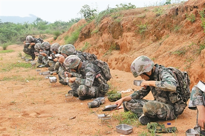 那天,某營組織20公里戰斗體能訓練,告別以往“埋鍋造飯”傳統,采取模塊化飲食保障,利用簡易爐具對真空包裝食品進行加熱后食用……官兵的思維和行動都在轉變。