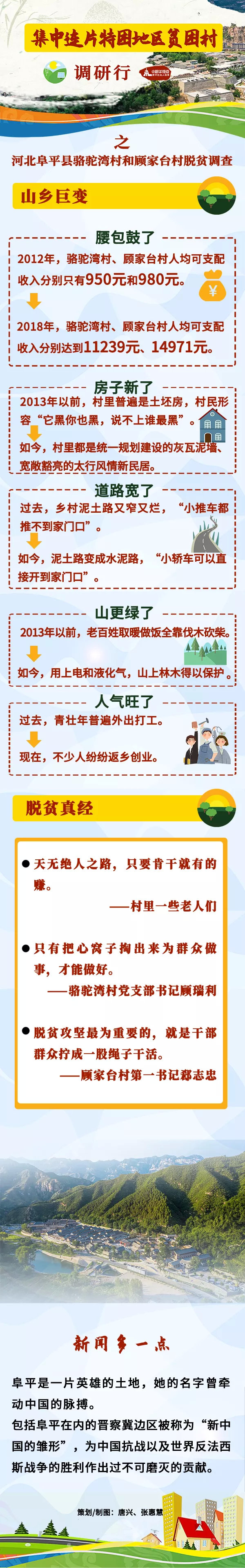 駱駝灣村和顧家臺村的脫貧,是眾多老區脫貧的縮影。我們堅信,在以習近平同志為核心的黨中央堅強領導下,一定能在2020年如期打贏脫貧攻堅戰,一定能在新時代不斷續寫鄉村振興新篇章!
