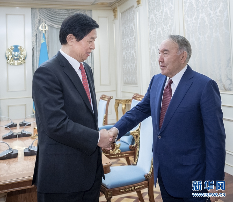 會見納扎爾巴耶夫時,栗戰書首先轉達了習近平主席的親切問候。他說,中哈是搬不走的好鄰居、最可信賴的朋友和伙伴。中哈建交27年來,在兩國領導人的戰略引領和推動下,中哈關系實現了從睦鄰友好到互為永久全面戰略伙伴、從打造利益共同體到構建命運共同體的歷史性跨越,成為國家間關系的典范。雙方要增進政治互信,深化全方位互利合作,讓中哈合作廣泛惠及兩國和兩國人民。中方對哈未來發展充滿信心,將一如既往支持哈方走符合本國國情的發展道路。納扎爾巴耶夫表示,中國是哈的好朋友,中國的發展對哈至關重要。深化對華合作,符合兩國共同利益。繼續鞏固和發展哈中關系,始終是哈對外政策的優先方向。哈方看好中國發展前景,相信中國一定能夠實現偉大復興的宏偉目標。