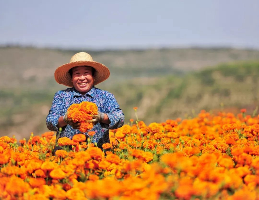 9月12日,寧夏彭陽。種植萬壽菊,不僅發展了旅游業,也讓當地老百姓過上了好日子。作者:瑾
