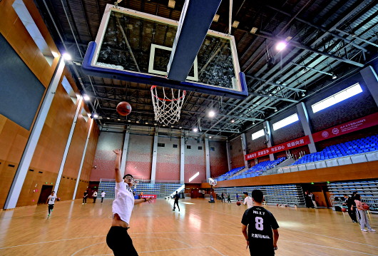 學生們在南開大學津南校區體育館內運動(10月14日攝)。新華社記者李然攝
