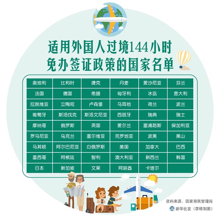 附:適用外國人過境144小時(shí)免辦簽證政策的國家名單