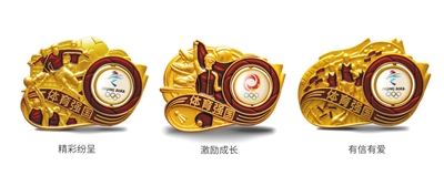 “精彩紛呈”徽章的畫面選取中國足球聯(lián)賽和中國職業(yè)籃球聯(lián)賽畫面,象征著中國職業(yè)體育的發(fā)展歷程。中國體育產(chǎn)業(yè)正在快速發(fā)展,成為經(jīng)濟(jì)增長新動能。“激勵成長”徽章主畫面選取奧運(yùn)金牌選手揮舞國旗、身穿品牌“戰(zhàn)衣”的奪冠經(jīng)典瞬間,各種體育裝備、器材環(huán)繞四周,體現(xiàn)出中國優(yōu)秀的體育企業(yè)與體育品牌經(jīng)過了數(shù)十年發(fā)展歷程。“有信有愛”徽章的主畫面中,三名青年迎著朝陽奔跑,身后一張張飄揚(yáng)的體育彩票匯成旗幟,徽章下方金色雙手托起陽光,呈現(xiàn)出一幅“有信有愛,樂善人生”的畫面。