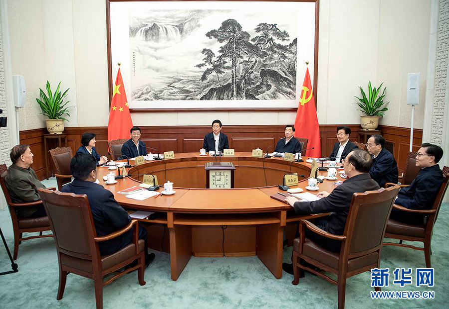 11月1日,中共全國(guó)人大常委會(huì)黨組在北京舉行會(huì)議,傳達(dá)學(xué)習(xí)習(xí)近平總書(shū)記在黨的十九屆四中全會(huì)上的重要講話(huà)和全會(huì)精神,統(tǒng)一思想認(rèn)識(shí),研究貫徹落實(shí)工作。中共中央政治局常委、全國(guó)人大常委會(huì)委員長(zhǎng)、黨組書(shū)記栗戰(zhàn)書(shū)主持會(huì)議并講話(huà)。 新華社記者 李濤 攝
