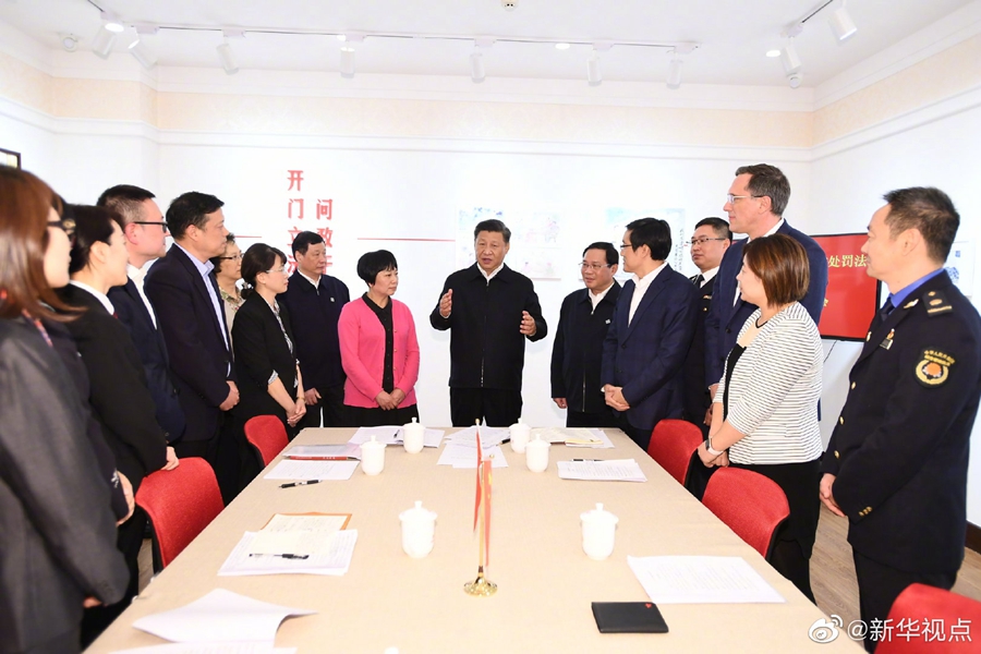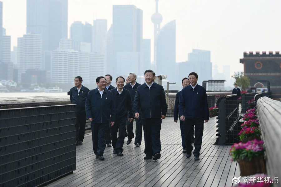 習近平總書記2日在上海市考察調研。當天下午,他來到楊浦區濱江公共空間楊樹浦水廠濱江段、長寧區虹橋街道古北市民中心實地考察,了解城市公共空間規劃建設和社區治理與服務情況,并同當地居民親切交談。(文字記者:張曉松 攝影記者:鞠鵬、謝環馳) ????