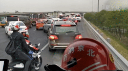 在北京,一輛消防車出警救援時被堵,兩名熱心騎手幫忙疏導交通。