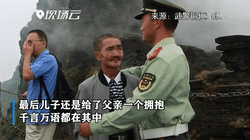 在貴州,一名堅守崗位的戰士身旁佇立著不舍離去的老父親,千言萬語化作一個深情的擁抱。