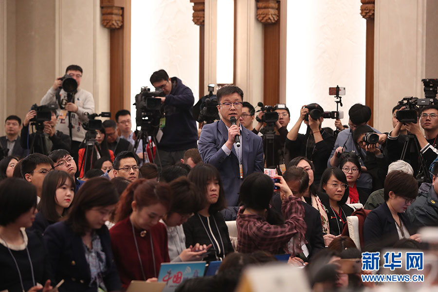 全國政協十三屆二次會議新聞發布會于3月2日15:00在人民大會堂一層新聞發布廳召開,大會新聞發言人郭衛民向中外媒體介紹本次大會有關情況并回答記者提問。圖為中國新聞社記者。