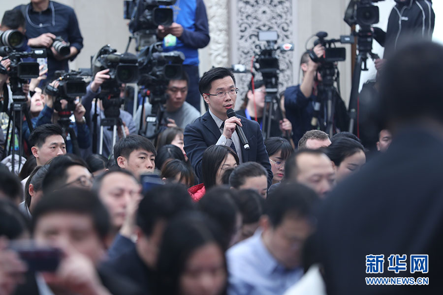 十三屆全國人大二次會(huì)議3月4日上午11時(shí)15分在人民大會(huì)堂新聞發(fā)布廳舉行新聞發(fā)布會(huì),由大會(huì)發(fā)言人就大會(huì)議程和人大工作相關(guān)的問題回答中外記者提問。圖為新華社記者提問。新華網(wǎng)/中國政府網(wǎng) 陳杰 攝