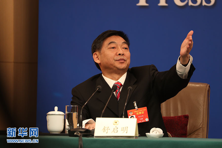 全國政協(xié)十三屆二次會議3月5日15:00在梅地亞中心多功能廳舉行記者會,邀請5位全國政協(xié)委員就“打贏防范化解重大風(fēng)險、精準(zhǔn)脫貧、污染防治三大攻堅戰(zhàn)”回答記者提問。圖為主持人舒啟明。新華網(wǎng)/中國政府網(wǎng) 陳杰 攝