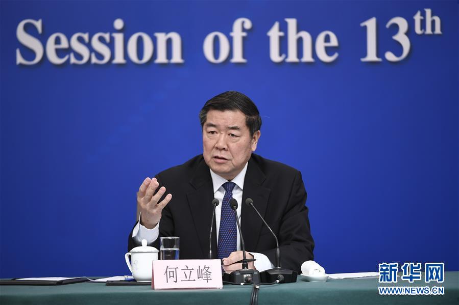3月6日,十三屆全國人大二次會議新聞中心舉行記者會,邀請國家發展和改革委員會主任何立峰,副主任寧吉喆、連維良就“大力推動經濟高質量發展”相關問題回答中外記者的提問。這是何立峰在回答記者提問。 新華社記者 王鵬 攝