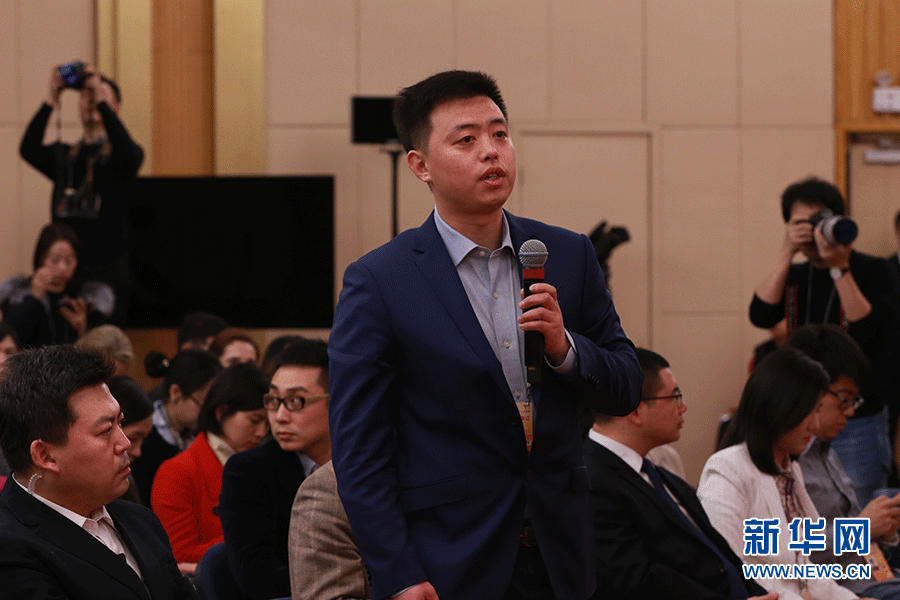 全國政協(xié)十三屆二次會議3月6日下午在梅地亞兩會新聞中心舉行記者會,邀請5位全國政協(xié)委員就“優(yōu)化營商環(huán)境、促進(jìn)民營經(jīng)濟(jì)高質(zhì)量發(fā)展”回答記者提問。圖為天津海河傳媒中心記者提問。新華網(wǎng)/中國政府網(wǎng)?馬娟 攝