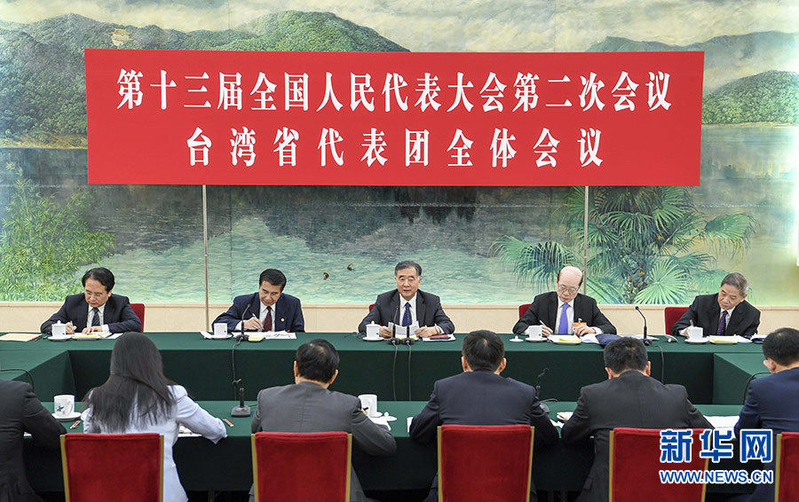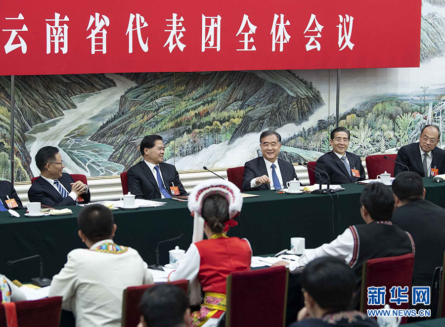 汪洋分別參加臺灣代表團(tuán)、云南代表團(tuán)審議。在臺灣代表團(tuán),汪洋在認(rèn)真聽取符之冠、陳云英、陳軍等代表發(fā)言后指出,習(xí)近平總書記在《告臺灣同胞書》發(fā)表40周年紀(jì)念會上的重要講話,是指引新時(shí)代對臺工作的綱領(lǐng)性文獻(xiàn)。要學(xué)深悟透講話的精神實(shí)質(zhì)和核心要義,深刻認(rèn)識兩岸統(tǒng)一是歷史大勢,牢牢把握對臺工作正確方向。要廣泛深入聽取臺灣同胞的意見,完善配套政策,把促進(jìn)兩岸經(jīng)濟(jì)文化交流合作“31條措施”等惠臺舉措落到實(shí)處,深化兩岸融合發(fā)展。要堅(jiān)持一個中國原則和“九二共識”,堅(jiān)決反對“臺獨(dú)”,團(tuán)結(jié)更多臺灣同胞共擔(dān)民族大義,為推動兩岸關(guān)系和平發(fā)展、推進(jìn)祖國和平統(tǒng)一進(jìn)程作出更大貢獻(xiàn)。在云南代表團(tuán),汪洋認(rèn)真聽取阮成發(fā)、馬正山、玉龍等代表的發(fā)言,充分肯定過去一年云南改革發(fā)展取得的成績。他希望云南深入貫徹習(xí)近平總書記對云南工作的重要指示精神,堅(jiān)定不移落實(shí)黨的民族政策和宗教工作基本方針,大力幫助人口較少民族和“直過民族”發(fā)展,努力打造民族團(tuán)結(jié)進(jìn)步示范區(qū)。要堅(jiān)決打好脫貧攻堅(jiān)戰(zhàn),努力攻克深度貧困堡壘,著力提高脫貧質(zhì)量,確保全面小康路上一個都不掉隊(duì)。